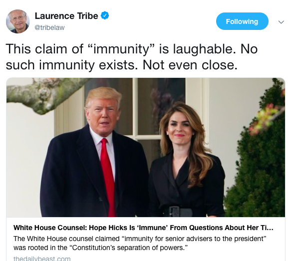Laurence Tribe, pre-eminent constitutional scholar and Harvard law professor, found the claim “laughable”: