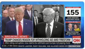 BY JULY 3, 2019: Trump Orders Hold on Previously Authorized Military Aid to Ukraine; Pentagon Says Hold Is Illegal
